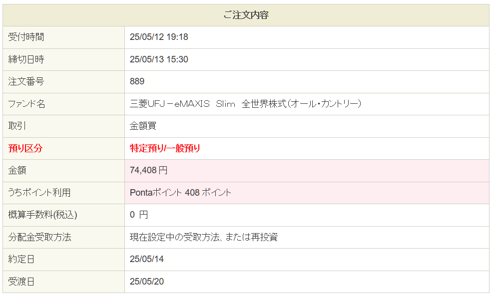 さっそく先ほどオルカンの注文を出しました