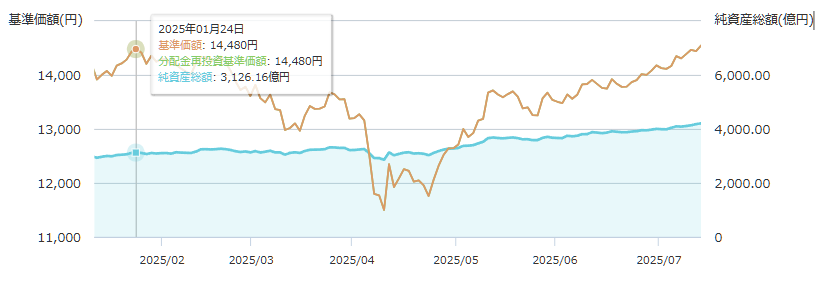 まずは騰落率と純資産総額の変化を確認します。