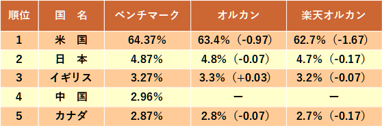 そのことから「オルカンの運用に何か問題があるのでは?」と疑問を呈していましたが、今回の国別比率を見てみると、以前と同じようにオルカンの誤差が小さくなっています。