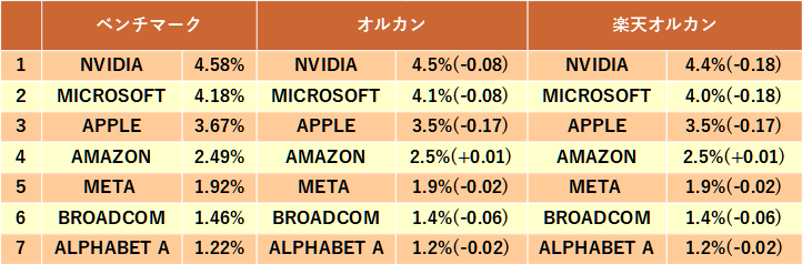 5月末時点では、オルカンよりも楽天・プラス・オールカントリーの方が米国株比率の乖離が小さくなっていました。