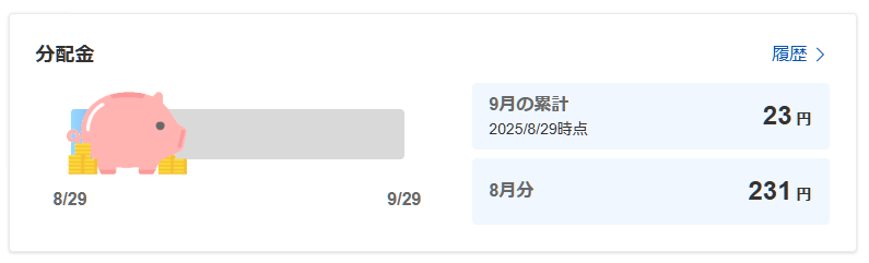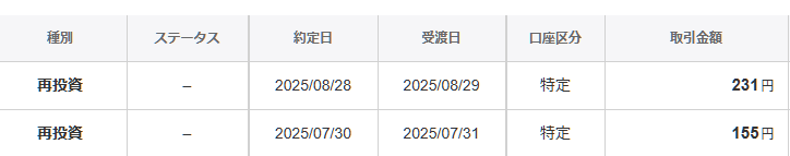 8月は30日間の運用で231円が再投資されたことになりますね。