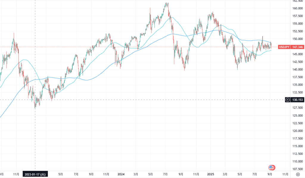 ドル円相場はここ1年以上、概ね140~160円のレンジ内で推移してきましたので、それが一つ下のレンジに下がる(上がる?)ことになります。