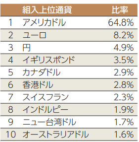 日本円は約5%しかありませんので残りの95%は外貨です。