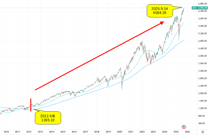 ▶ S&P500の週足チャート(2012年4月~2025年9月)
