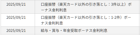 最大で0.44%の金利が付与される楽天銀行のボーナス金利ですが、なぜか9月21日に利息がもらえていました。