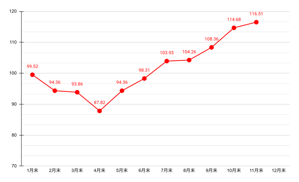 年初来の指数も116.51となり、前年末から16%以上の増加です。