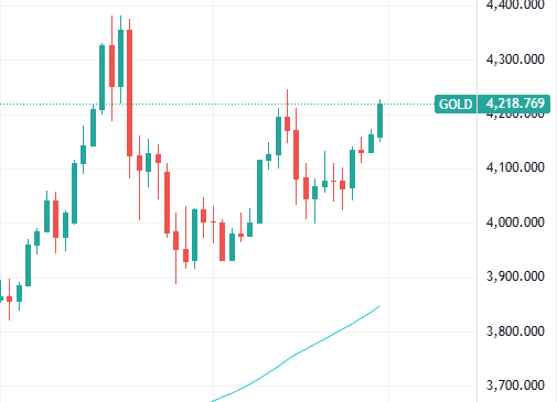 ゴールドの価格も安値を切り上げて高値を狙っている状況です。