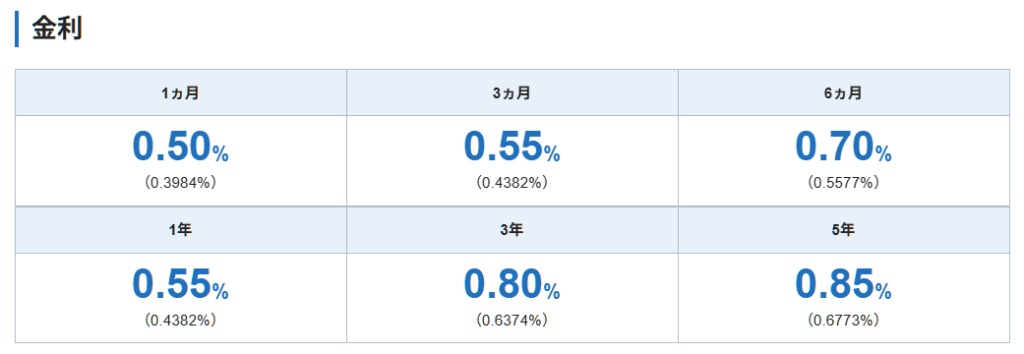 現在の金利を確認してみると、6か月物で0.7%となっています。