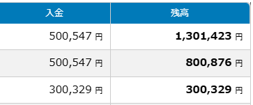 130万円を、50万・50万・30万の3つに分けていたのですが、3か月間の短い定期預金で1,423円(税引き後)が入金されていました。
