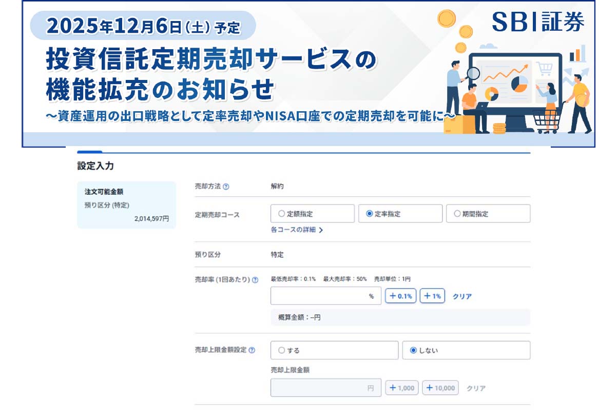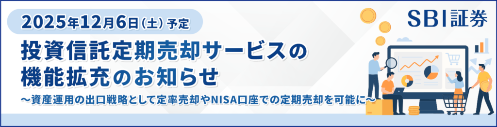 ついにSBI証券で投資信託の定期売却機能の強化が実施されます。