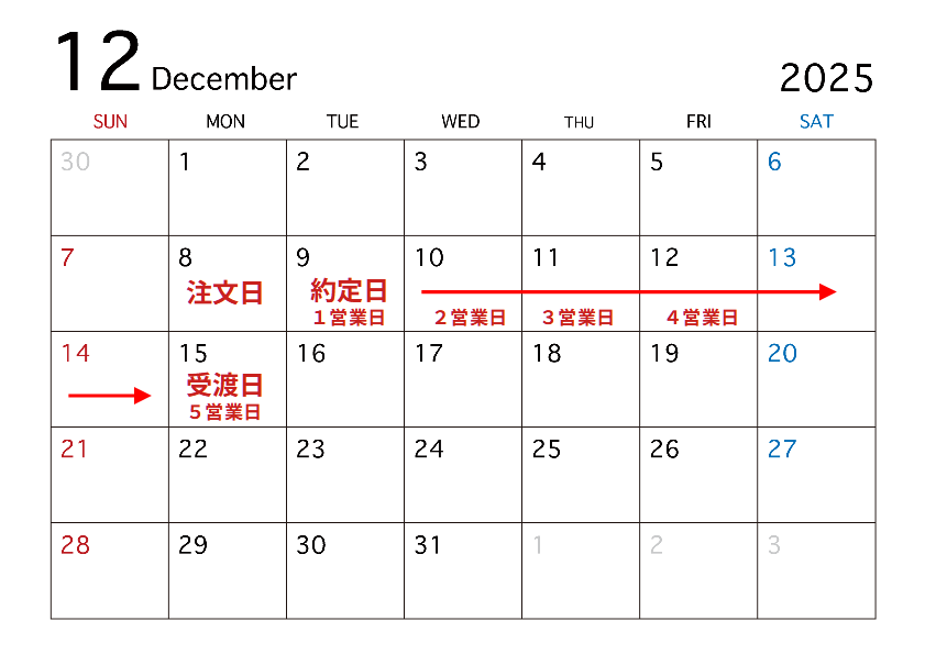 この日にあなたが出した注文が確定します。