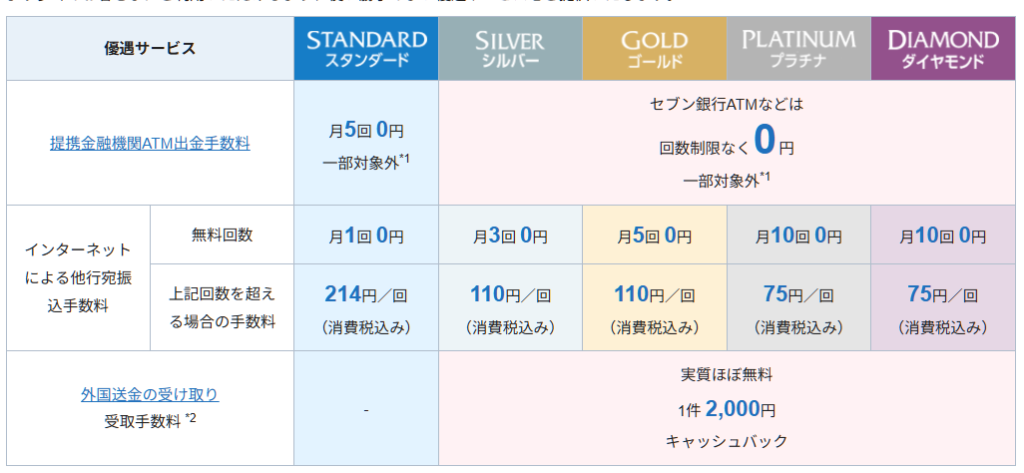 月10回まで他行への振り込み手数料が無料になったり、セブン銀行ATMは回数制限なく無料です。