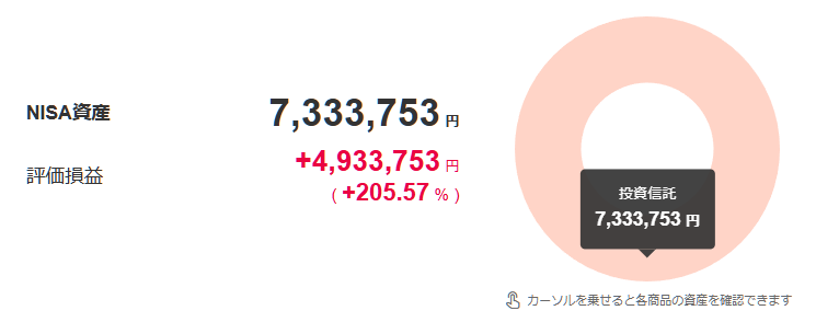 2025年12月末現在で205%(約3倍高!)の含み益が出ているため、このまま手を付けずに保有を継続します。