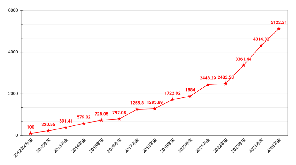 最近の3年間で資産は2倍になりましたが、それ以前は2倍になるまでに5年かかっています。