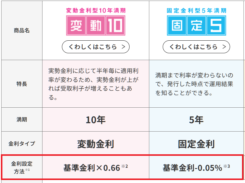 この2つの商品は、まったく異なる金利設定の方法になっているんですね。