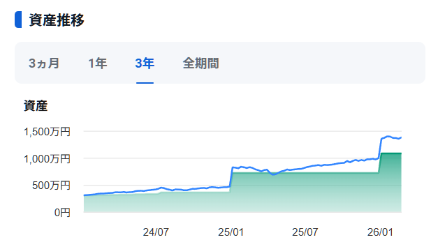 現在までの運用を確認してみると、トランプ関税で大きく値を下げた昨年の一時期を除いて、元本を下回ったことはありません。