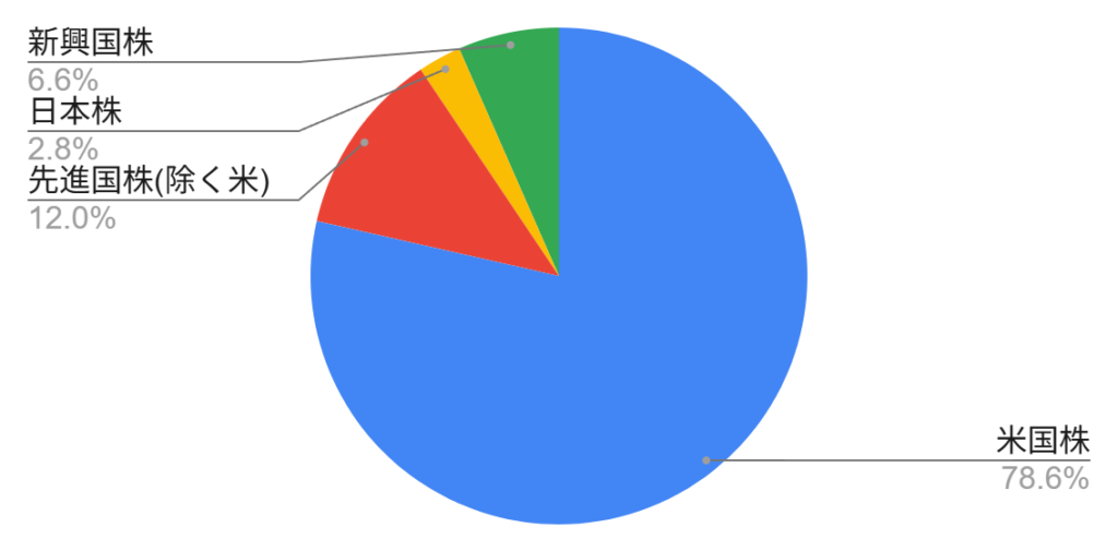 米国株の比率が1ポイント減少し、その他の国の比率が上昇しています。