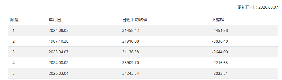 ちなみに歴代1位は、まだまだ記憶に新しい2024年8月5日の「4451円安」。