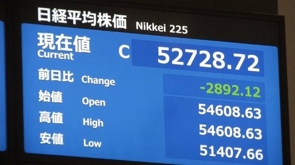 歴代3位の下落を記録した本日の終値は5万2728円でした。