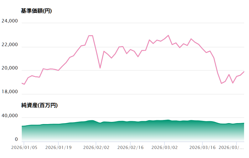 過去3か月間のSBI・iシェアーズ・ゴールドファンド(為替ヘッジあり)のチャートを確認してみます。