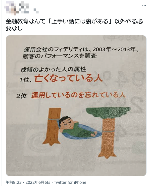 運用成績が1番良かったのは「亡くなった人」というのは眉唾のようですが、2位の「運用しているのを忘れている人」というのは本当だそう。
